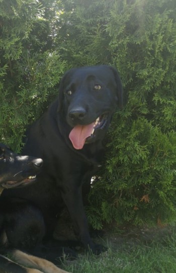 Czarny labrador. Ma założona czerwona obroże z imieniem CARMEN oraz mój nr telefonu. Ma malutką plamkę na przedniej łapie.