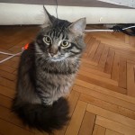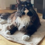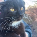 Czarny, wyjątkowo długie białe wąsy. trochę białego na na szuji i na łapkach. przyjazny bardzo (przylepa). uwielbia człowieków.