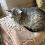 sierść brazowo-szaro-czarna, łagodna lubi się tulic