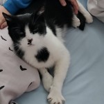 Czarno białej maści, charakterystyczna biała kropka pod nosem