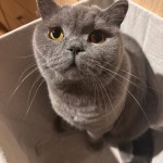 Kot w wieku około 3 lat, krępa budowa, maść szara