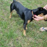 Znaleziony piesek jest mały ale bardzo przyjazny. Nie gania kotów i nie boi się ludzi. Posiada szeroką obroże.Szedł drogą Więcki - Sobiechy. Tymczasowo jest u nas.