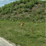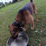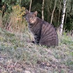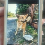 Zwierzę ma szarą opaskę na kleszcze (widać że ma już ją długo), jest wychudzony. Widać że oswojony, podchodzi do człowieka po dłuższej zachęcie.