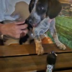 biało rudy, obroża skórzana, obcięte uszy i ogon, łagodny, lgnie do ludzi