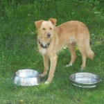 pies średniej wielkości o kolorze rudym.Ma gęste futro i spiczaste uszy