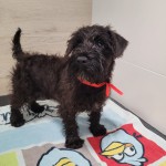 Młody szczeniak, ubarwienie brązowo czarne, sięga do kolan, nie boi się człowieka i chętnie się bawi. Bardzo tęskni i szuka ciągle kogoś.