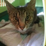 mloda, mniej wiecej 7-10 miesieczna, bura kotka, bardzo wychudzona. ufna wobec ludzi
