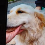 Golden ma około parę lat. wygląda na pańskiego, trochę rozszczochany, ale wygląda na zadbanego. Mamy psiaka na pace i nie możemy go zabrać, plus zwiał nam z pola widzenia. Ostatnio widziany w okolicy Delikatesów Cukierni Janca w Kiełpinie.