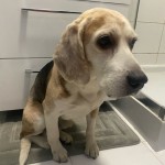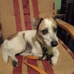 Młody wesoły piesek błąkał się od Sylwestra, biały z jasno brązowymi łatkami, przyjazny, na kolankowy. Obecnie przebywa w Schronisku Rafik w Bolesławiu koło Olkusza