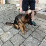 średniej wielkości pies, bardzo przyjazny I łagodny. Czarny z łapkami tri color