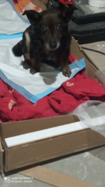 czarny drobny kundelek, bardzo łagodny, niewidomy, ma trochę białego w okolicach brzucha