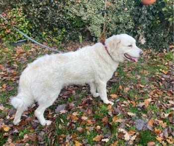 Waga ok. 30 kg, kolor biały/kremowy. Przyjazna, łagodna. 2 wilcze pazury na tylnych łapach