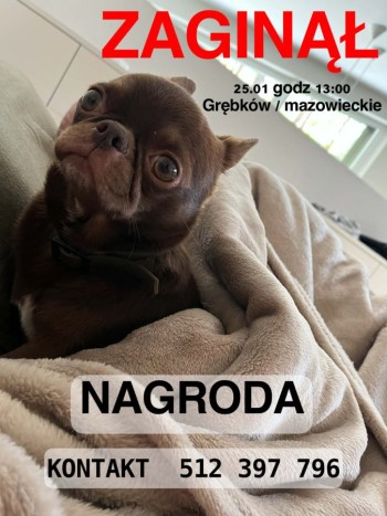 Data znalezienia: 25/01/2026 Miejscowość: Grębków Telefon: +48 512 397 796 Numer mikroczipa: 616093902240136 Nr ID szczepienia: Płeć: Samiec Gatunek: Pies Rasa: Chihuahua