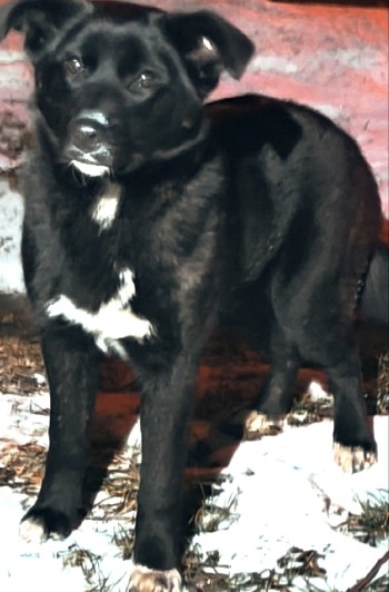 Czarna, średniej wielkości, raczej młoda. Biały krawat i końcówka ogona.