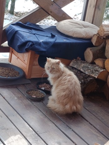 biszkoptowy kot/kotka przychodzi od grudnia do nas, bardzo płochliwy